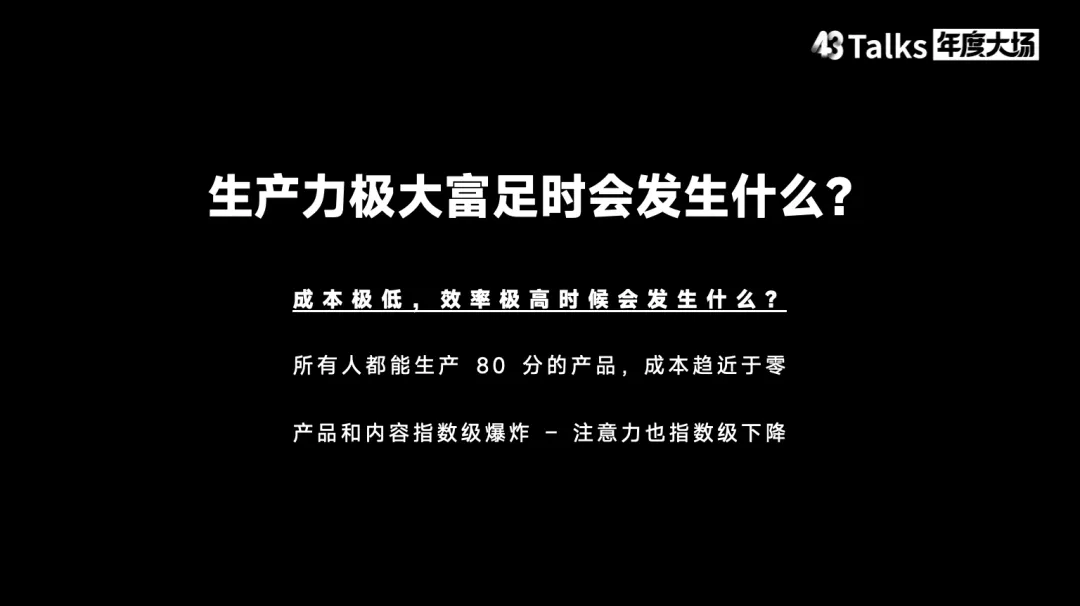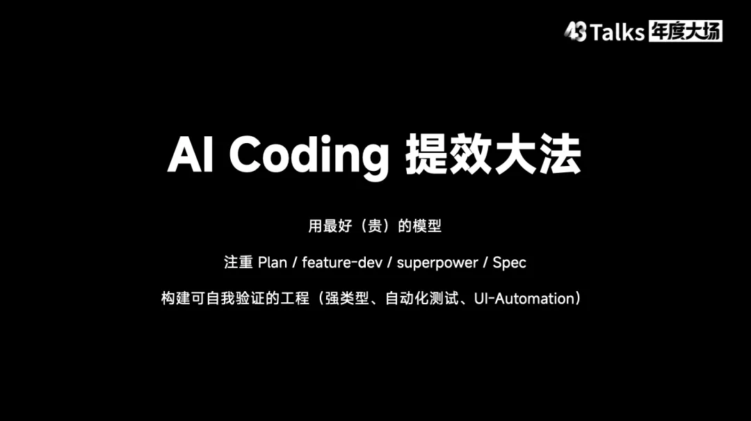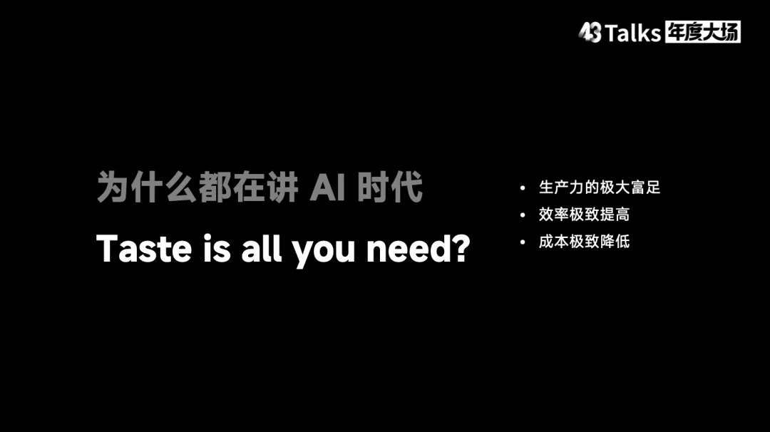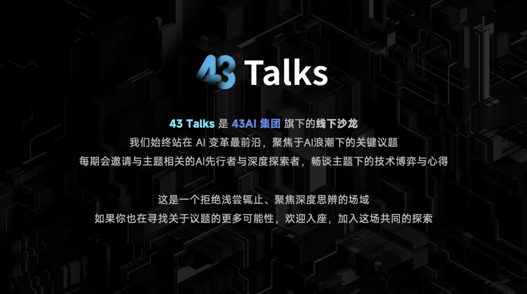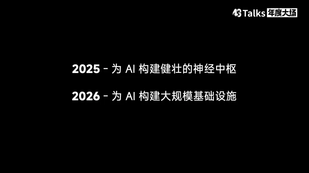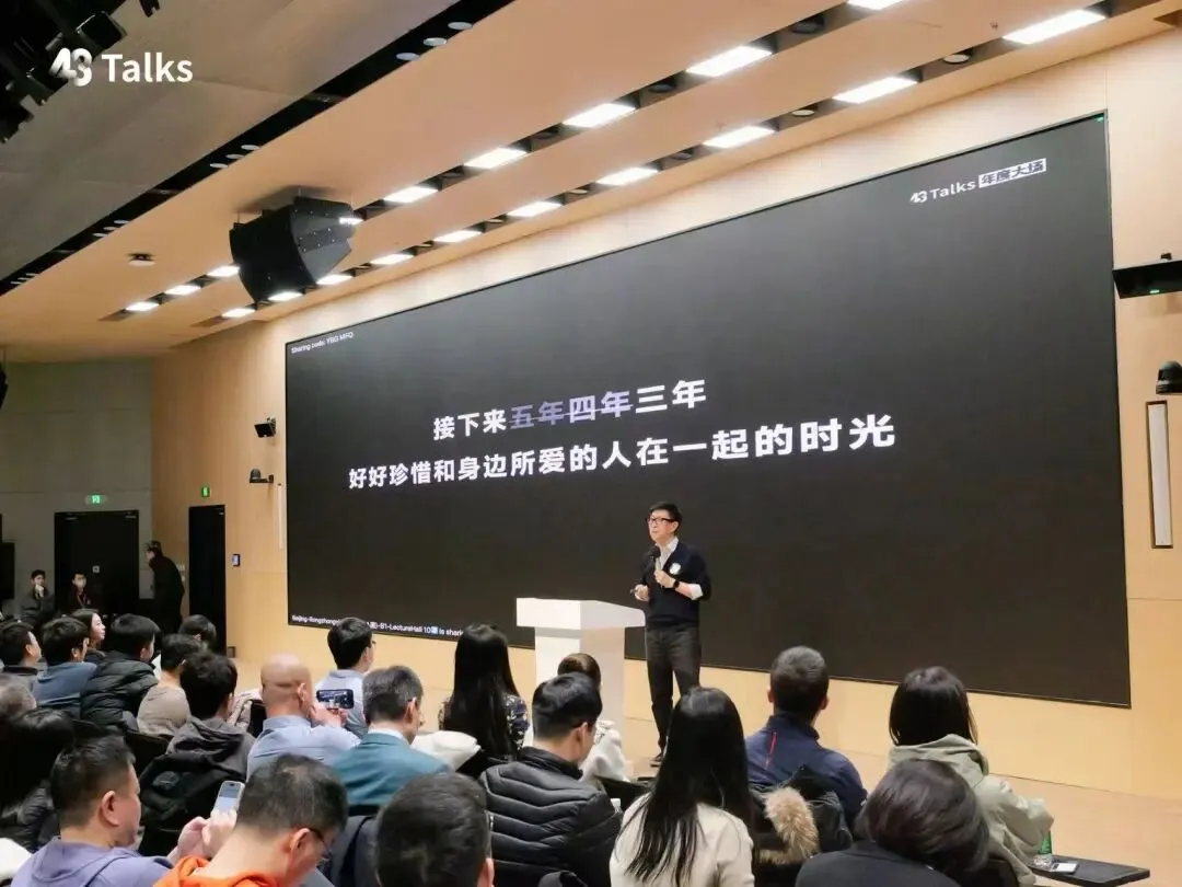 结语:拥抱 AI 时代的到来我一直在思考“人间一日,AI 一年”这句话。从 ChatGPT 发布之初,我就坚持一个观点:ChatGPT 发布后五年,我们将迎来通用人工智能。当然,不同类型的人工智能之间仍存在差异。最后,让我用一句话结尾:请珍惜与身边所爱的人在一起的时光。因为五年后会发生什么,我们无从知晓。无论是人类社会还是地球本身,都将发生我们无法预测的深刻变化。关于43 Talks43 Talks 2026年度大场还有 AI Coding现场手搓以及关于亲密关系、教育的畅谈,我们将陆续整理精彩内容,敬请关注。