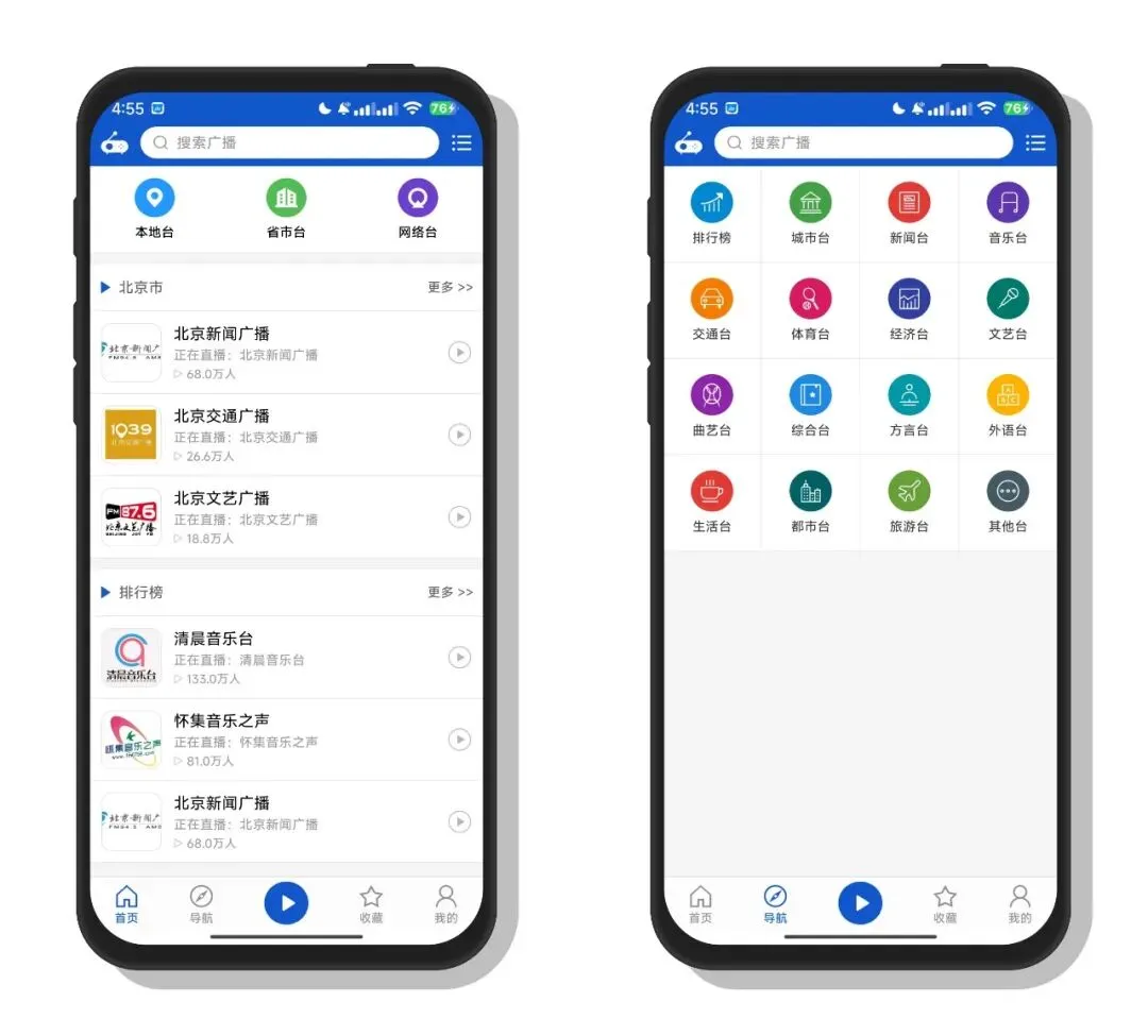 一款广播聚合APP,可以收听各种广播电台,界面干净简洁,完全无广告,也不用注册登录,所有内容免费收听,通过手机打开软件即可随时收听。