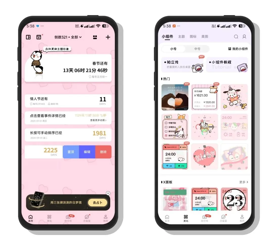 一款可爱有趣的时间管理小工具重要日子都给你拿捏得死死的,记录纪念日、生日还款日、考试日等等你关心的日子并精确显示距离这些目标日的天数从此各方各面的安排都从容不迫。