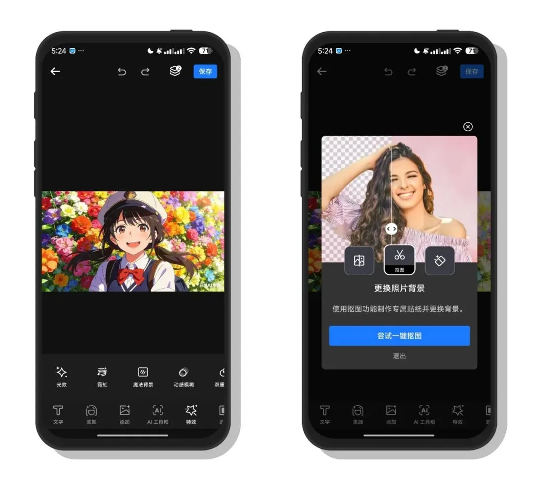 PhotoArt 是一款适合所有人的强大的一体化人工智能照片编辑器,包括照片编辑工具、照片增强器和拼贴制作器。由尖端人工智能技术支持,只需轻轻一按,PhotoArt就能将您的想象变成现实,PhotoArt的人工智能照片编辑工具可以满足您所有的照片编辑需求,例如一键增强、魔术橡皮擦、AI换脸、AI卡通滤镜、脸部修饰、AI去除背景、效果、模板、拼贴、双重曝光、贴纸、裁剪、HSL、曲线、文本等。