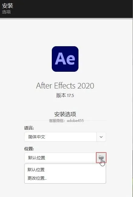 4.点击文件夹图标,然后点击【更改位置】更改安装路径。