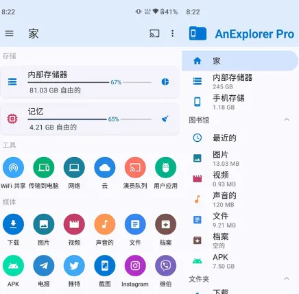 2. 存储设备管理AnExplorer Pro 支持多种存储设备的文件访问,包括内部存储、SD 卡、USB 存储、闪存驱动器和 USB OTG。无论是需要管理本地存储还是外部设备中的文件,用户都可以通过这款应用程序实现无缝的文件传输。