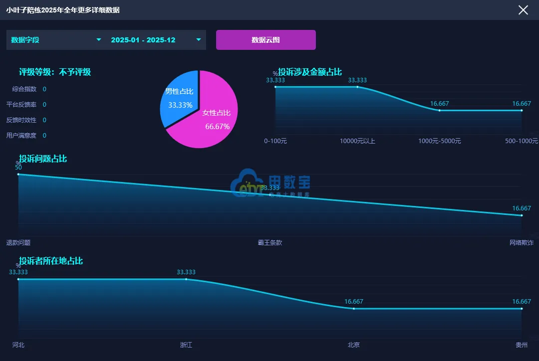 2025年全年,小叶子智能陪练因疑似存在退款问题、霸王条款、网络欺诈等问题被用户投诉。