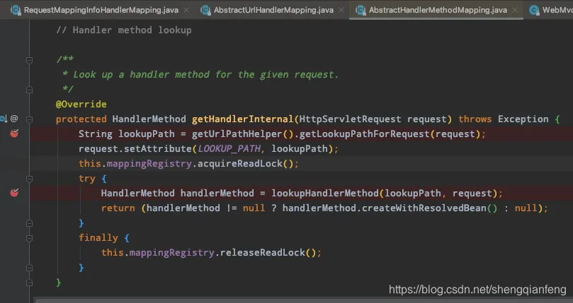 org.springframework.web.servlet.handler.AbstractHandlerMethodMapping#getHandlerInternal