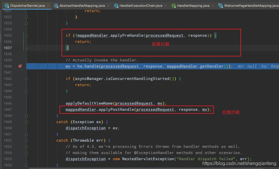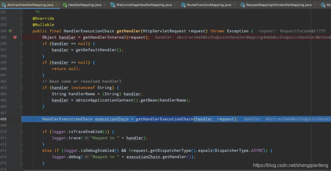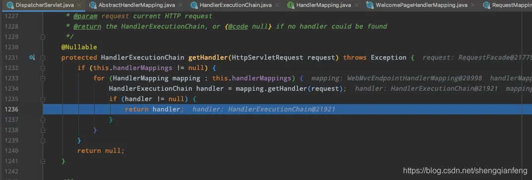 这里对handlerMappings进行迭代,第一个迭代的是