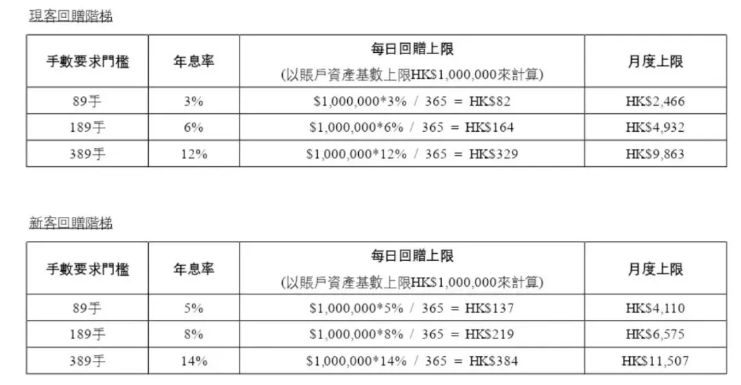 新客户回赠优惠:5%(仅限前10万港币,之后恢复为2.5%,2025年6月到8月之间开户的新客户可享受此优惠)