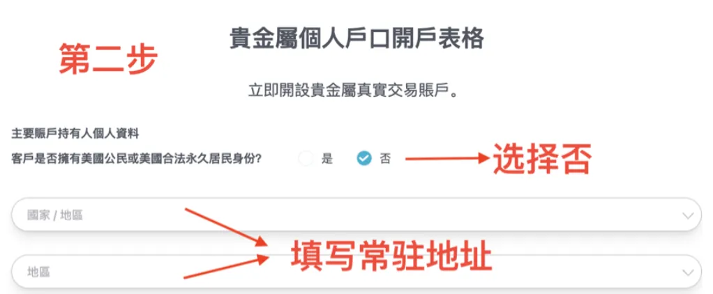 申报非美国公民身份(美国公民或绿卡持有人无法开户),填写住址信息,选定结算货币(如果主要使用美卡入金,开户时请选择美元结算,主要使用港卡入金,开户时请选择港币结算,以避免汇损问题),填写完成后上传地址证明