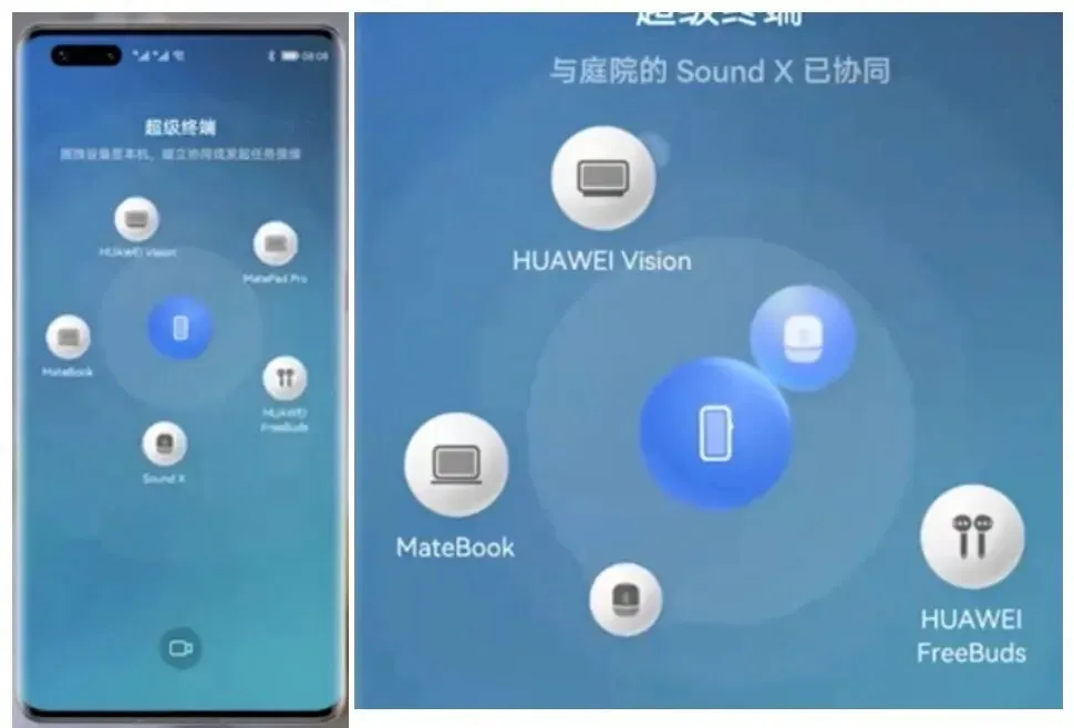 多设备构成超级终端: 用户操作体验增强:卡片里展示超级终端,可被连接的设备悬浮显示。拖拽即可完成手机与其他设备的连接。