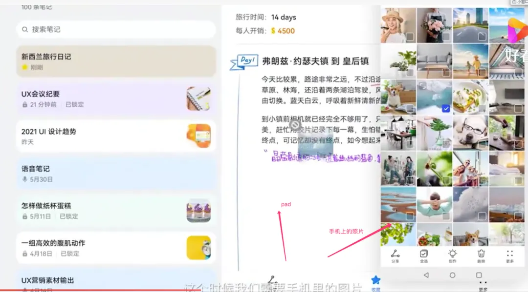 手机和 pad 协同: pad 和手机协同后,pad 可方便访问手机上的照片。如下图所示: