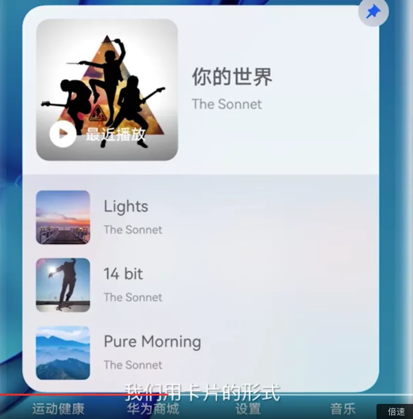 做了一个统一的 UI/UE 入口——卡片: 方便用户使用。其使用场景有“可以选择音乐输出到任何连接上的耳机,音箱”。