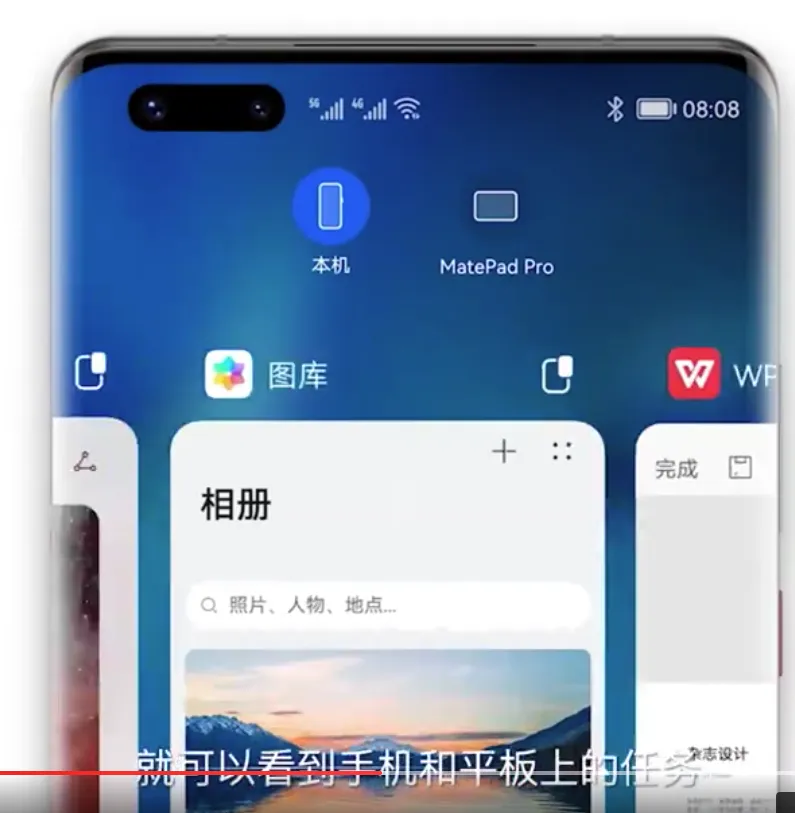 有一个应用场景是跨设备流转:手机和 pad 搭配成超级终端后,手机能看到 pad 上的任务。比如下面这样: