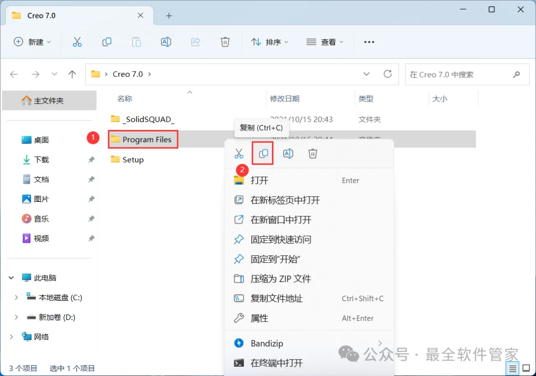 1、下载Creo 7.0软件安装包到电脑上,右键选择【解压到Creo 7.0\】
