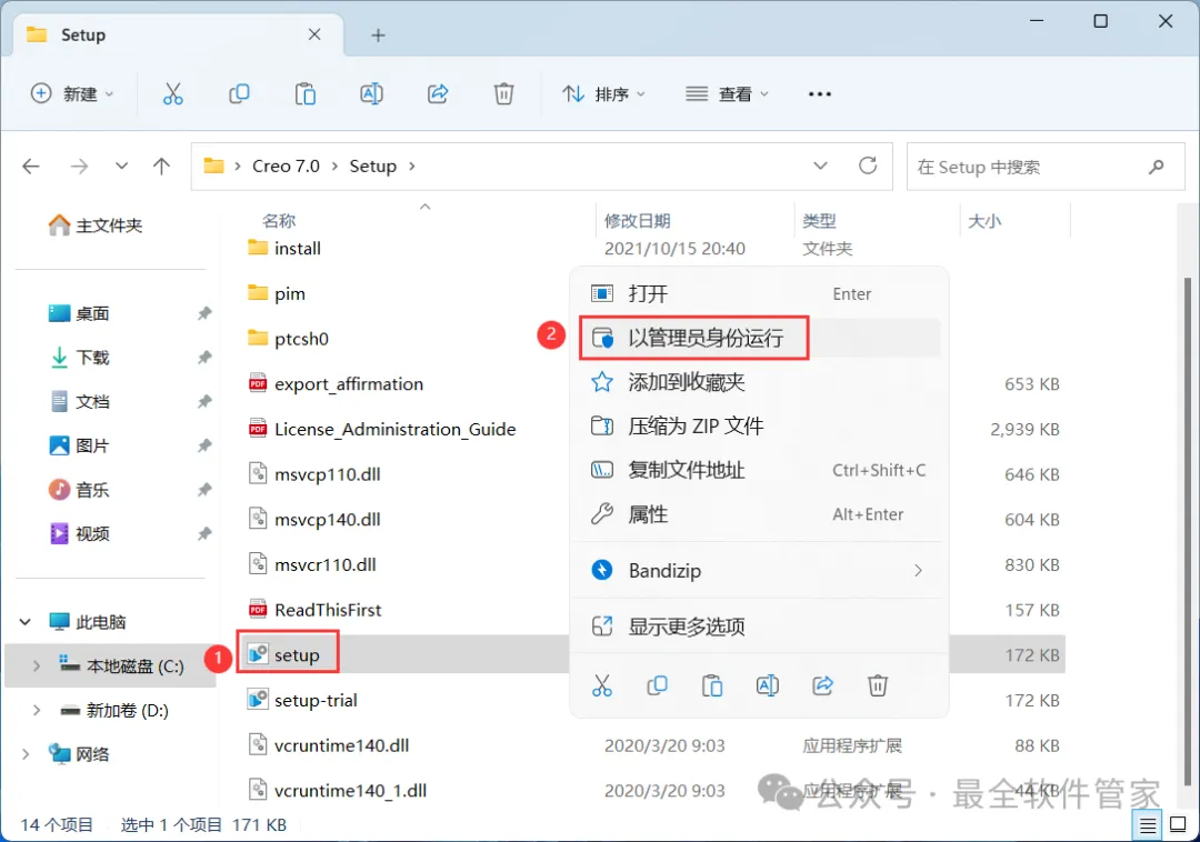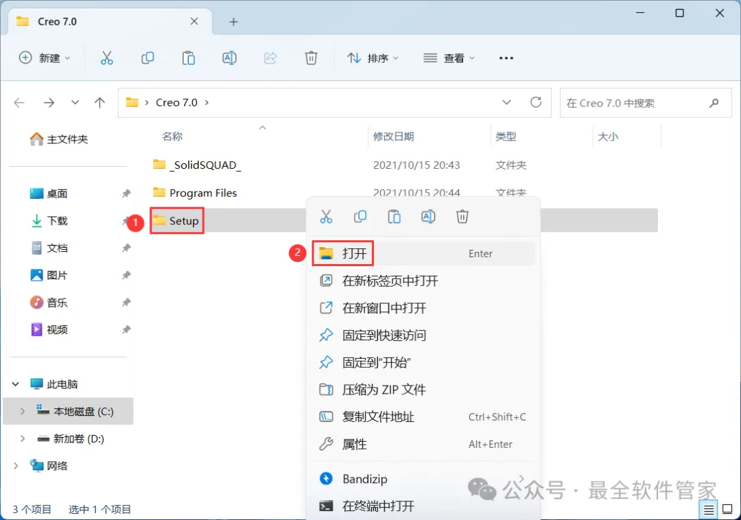 18、回到Creo 7.0文件夹,找到【Setup】文件夹,右键【打开】它