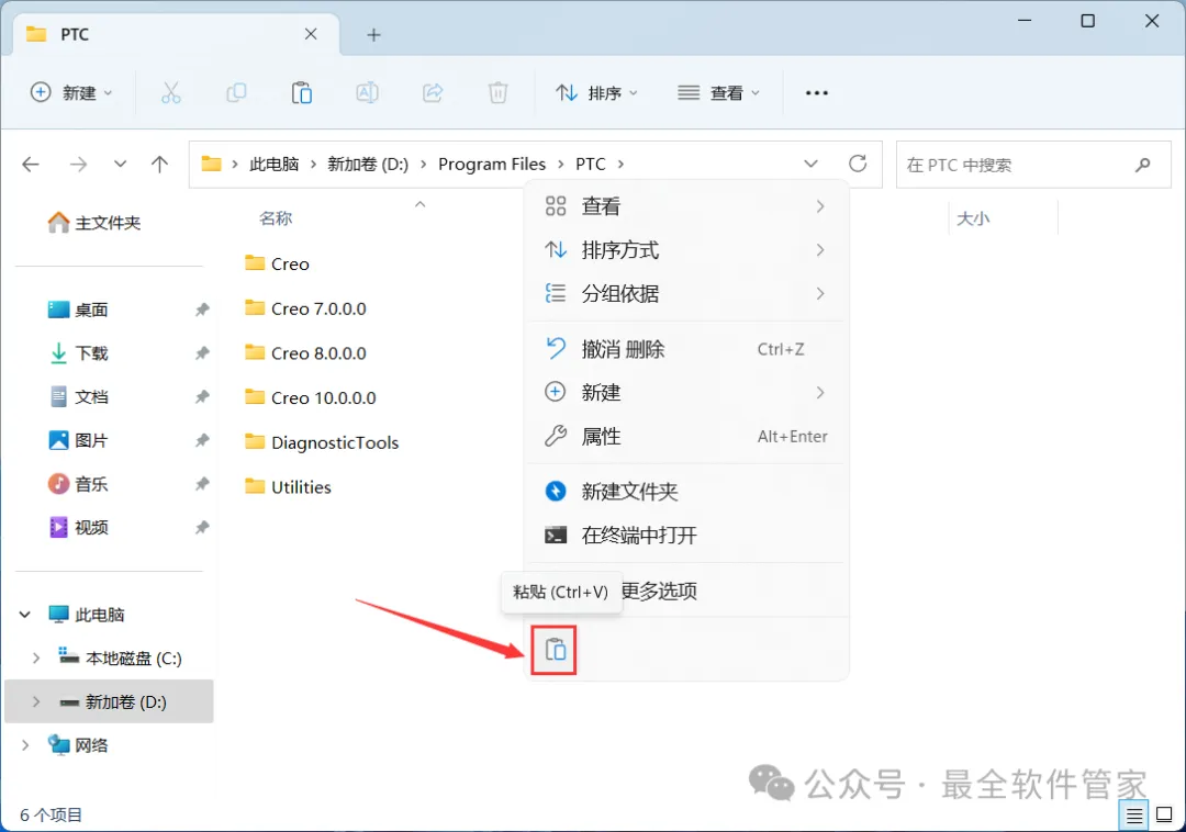 4、打开本地C盘,再右键文件夹的空白处,点击【粘贴按钮】