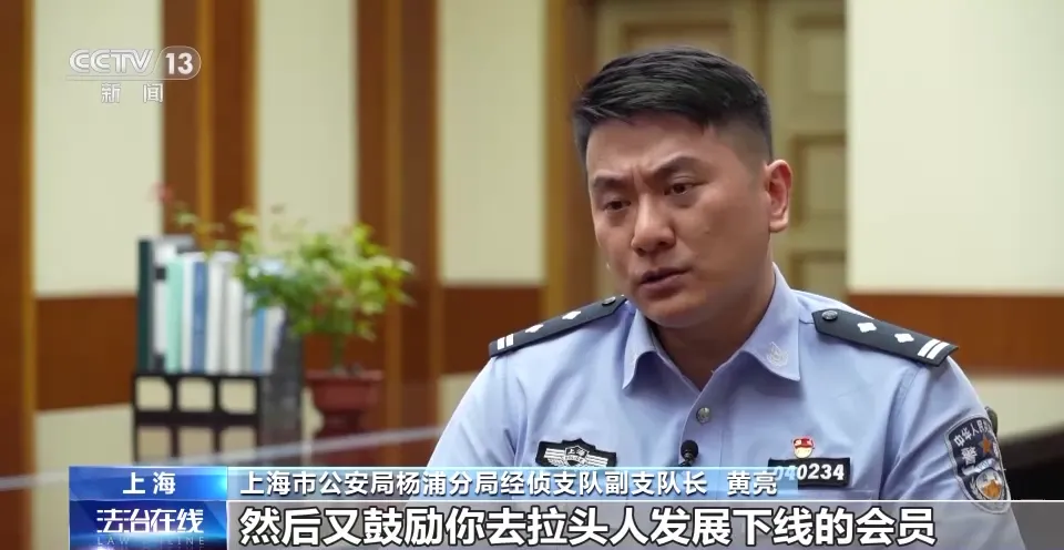 上海市公安局杨浦分局经侦支队副支队长 黄亮:当时我们就觉得,她反映的情况并不是普通投资的被害人,把会员分成了等级,交纳会员费,然后又鼓励发展下线的会员,她有可能是一个传销的参与人。