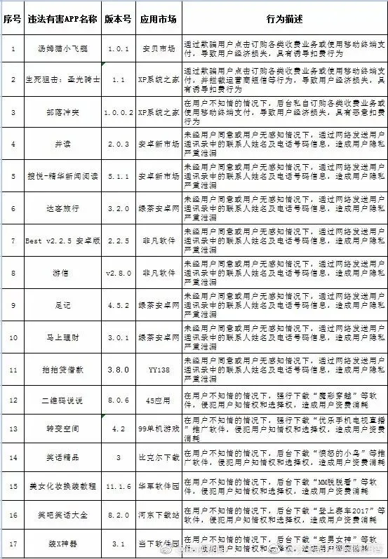 近日,广东警方发现等17款APP存在恶意扣费、窃取用户信息、强行捆绑推广应用软件等安全问题,涉及12个APP发布平台。警方已通报相关发布平台,对存在问题的APP进行核查处置。如果您的手机装有这些平台下载的上榜APP,请尽快卸载!