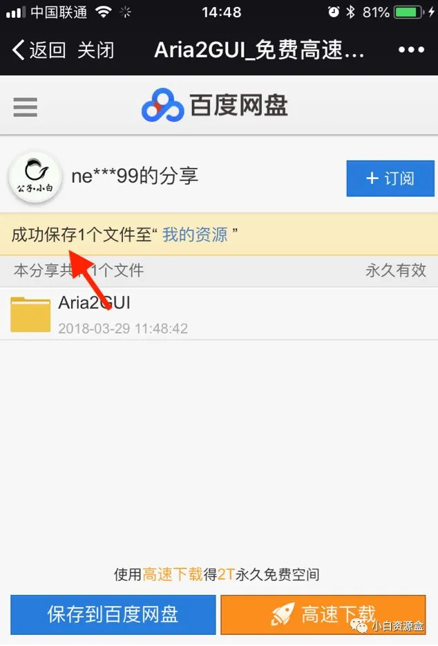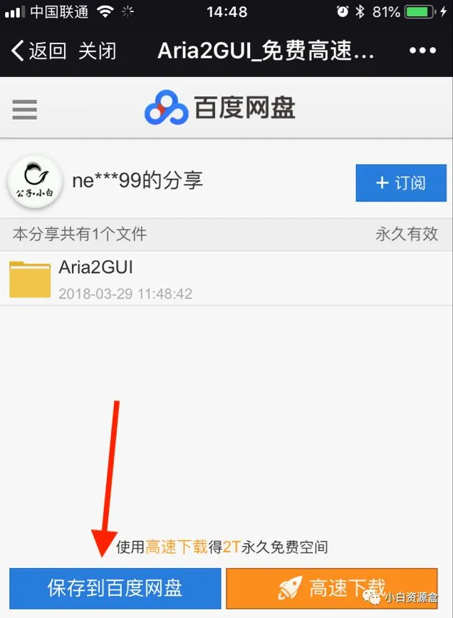 6. 点击保存到百度网盘(没有登陆百度网盘账户的朋友请先登录后保存)。