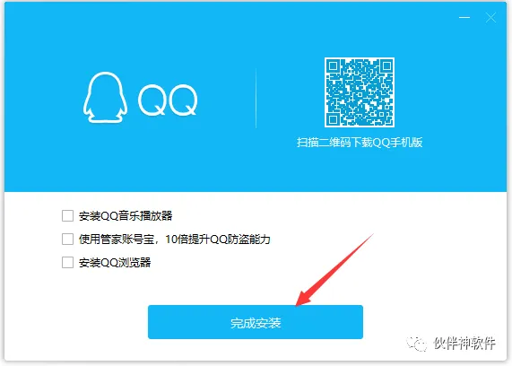 8.到此安装结束,欢迎大家关注微信公众号伙伴神软件,各类软件均可免费下载。