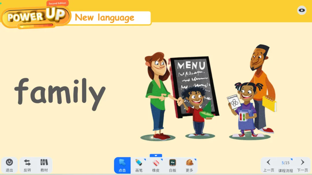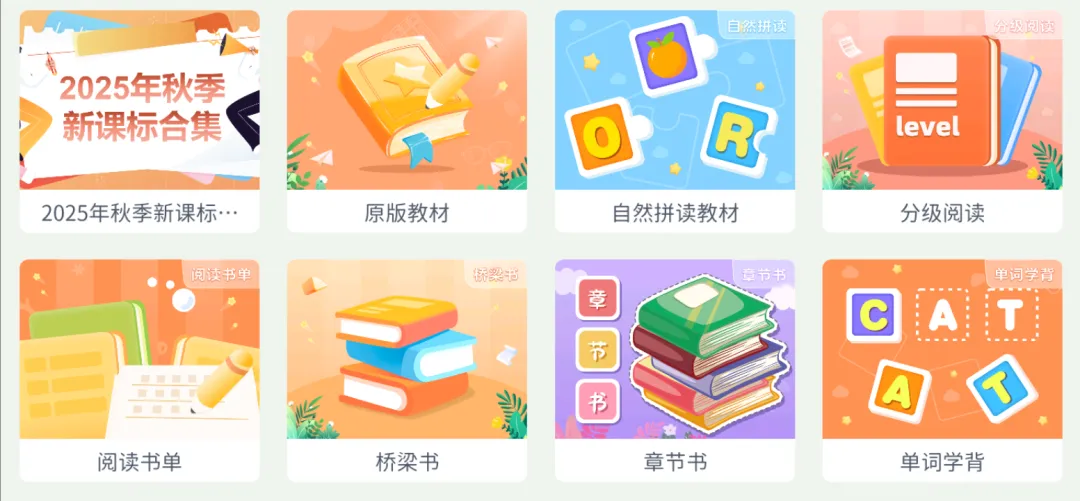原版教材:点读,跟读,测评,单词习题,配套的视频,讲解功能老师还可以给教材做讲解,课后布置讲解内容给学生复习。配套来的课外阅读丰富学生积累。
