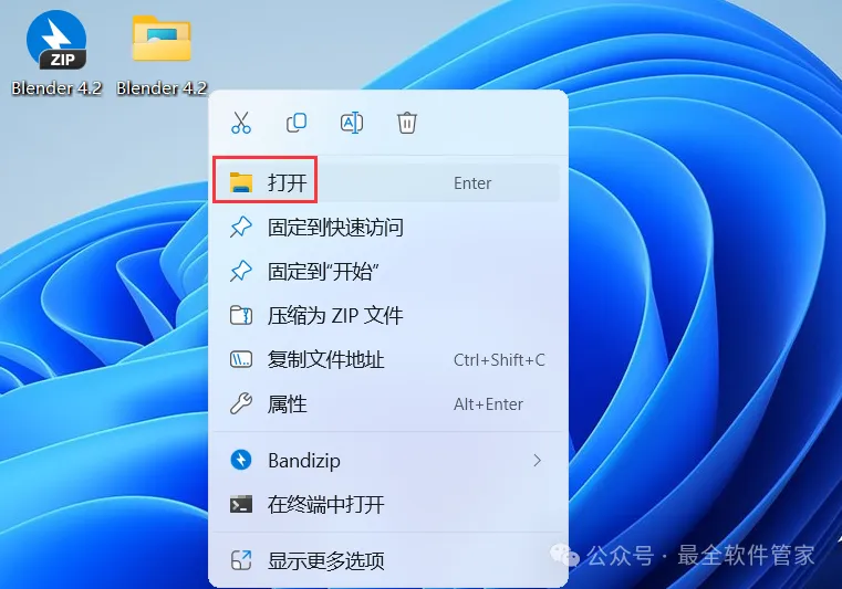 1、下载Blender 4.2软件安装包到电脑上,右键选择【解压到Blender 4.2\】