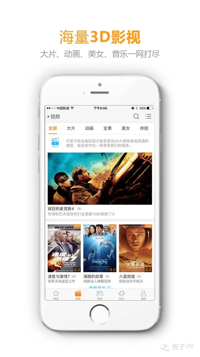橙子VR是一款2015年末刚刚问世的VR内容聚合软件,虽然是VR界的新军,但是上线后大招频出,先后更新了播放器、全景频道、VR数据包游戏、视频缓存等功能,以注重用户体验,片源质量好,资源更新快等优点赢得了用户不错的口碑。日盼夜盼,橙子VR苹果(IOS)版也终于上线了! 让我们一起来看看ios版的庐山真面目吧!