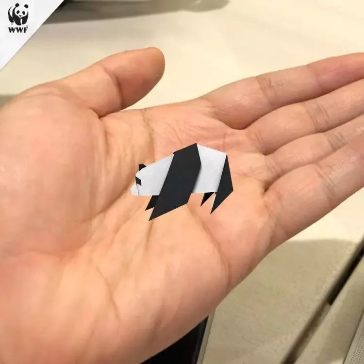 你看我的手就捏着这张虚拟的熊猫折纸呢!