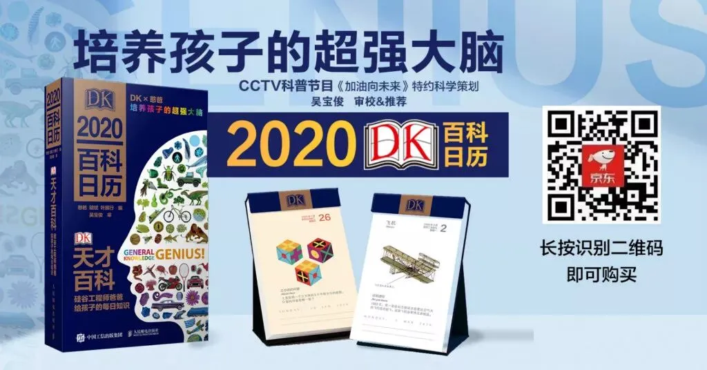 我和DK联合创作了《2020 DK天才百科日历》,周一到周五是百科知识,周六和周日是思维训练。每天不到两毛钱,培养孩子的最强大脑!扫描下方 二维码 或点击左下角 阅读原文 可以购买!
