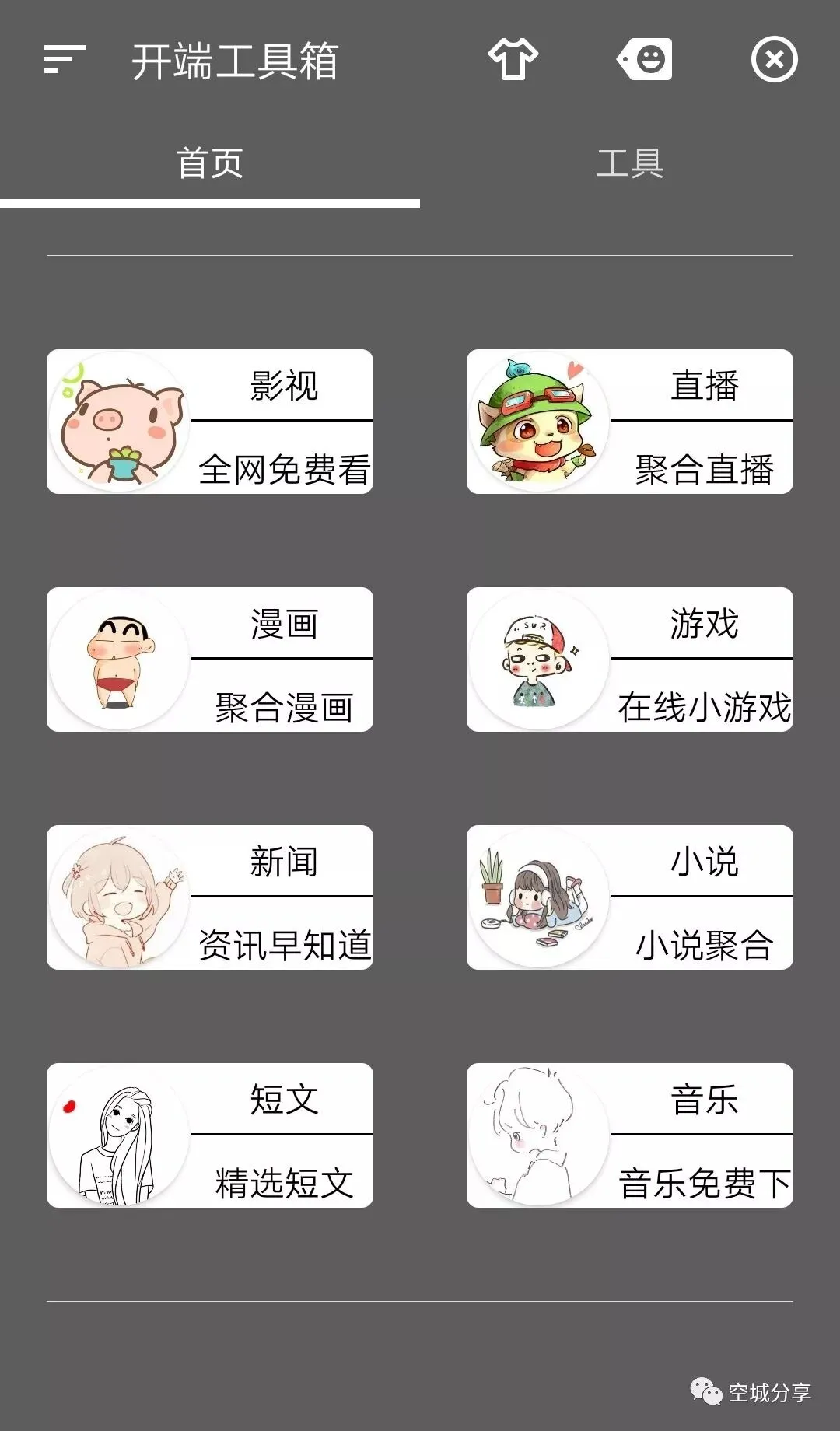 超强的手机工具箱,麻雀虽小五脏俱全,功能多到你用不完,一个软件搞定看电影、电视剧、听歌、看直播、玩游戏、漫画、新闻、斗图、下载……;应有尽有,极力推荐、你值得拥有!