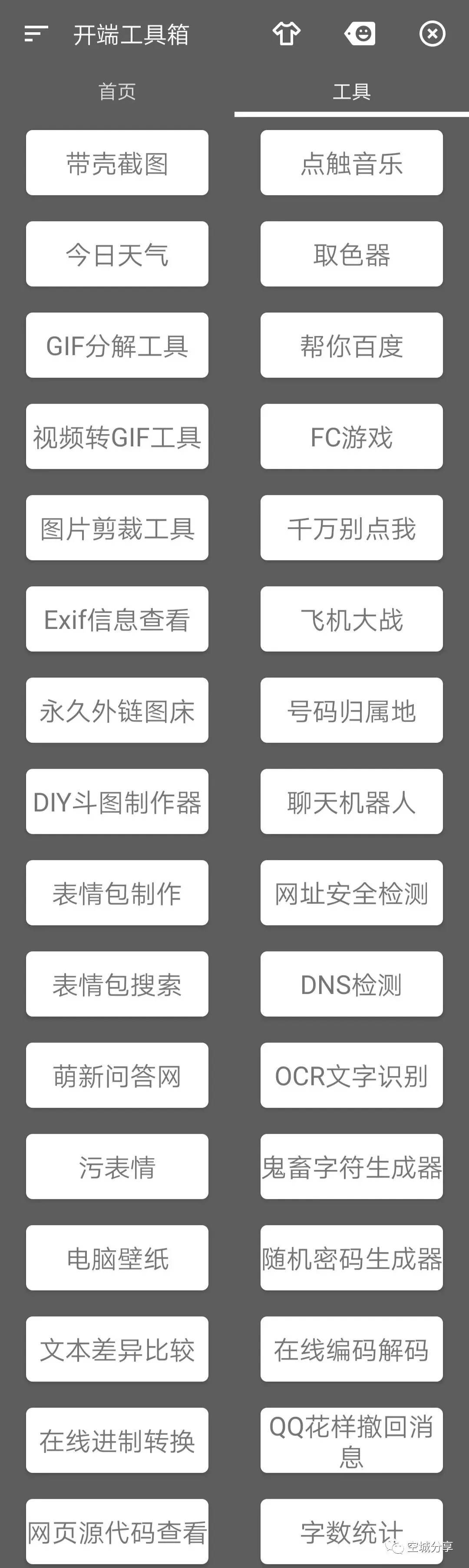 还支持截图、天气查询、图片的编辑以及表情包等等实用小工具,全部都是免费的,功能的分类也比较的详细,界面没有任何广告。