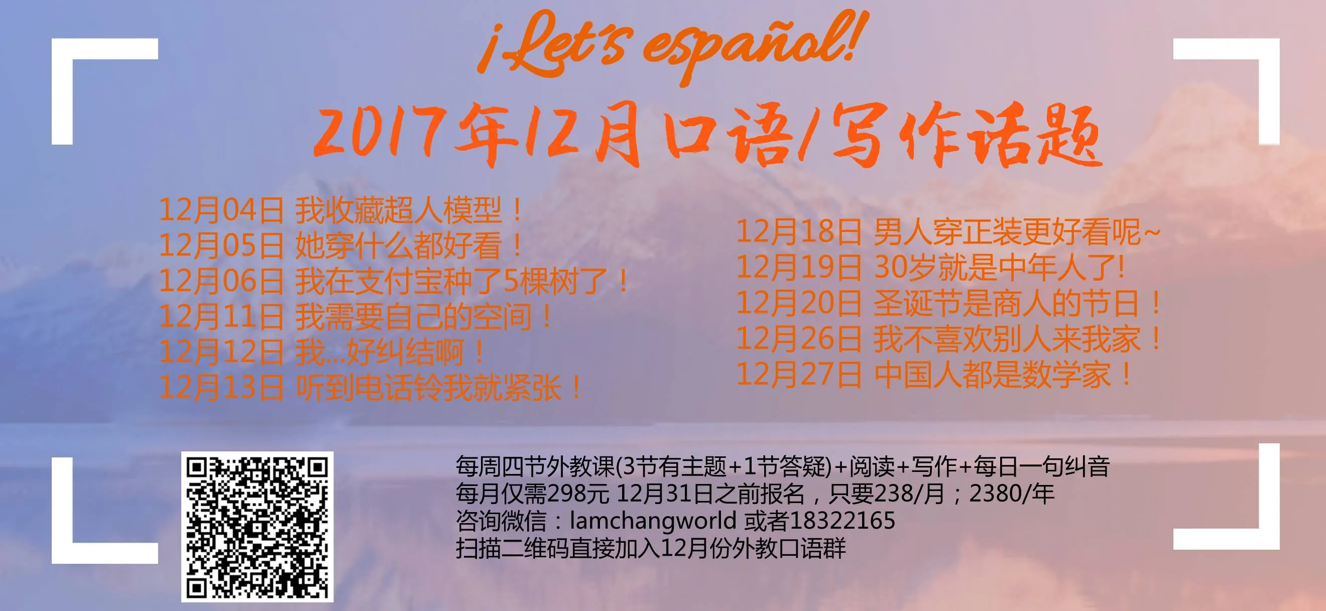 2018年价格298元/月。12月31日之前加入,238元/月!并且买十赠二,一年课程只要10个月的学费~并赠送超可爱学习套装(一套八个西班牙语书签+2018年可粘贴年历+2018年日历墙报+每日学习计划便签+每月学习计划卡)