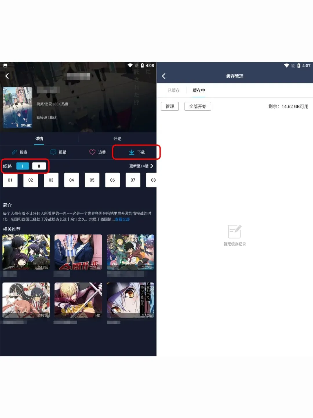 离线缓存:喜欢的番剧可以缓存下来,没网的时候也可以看!