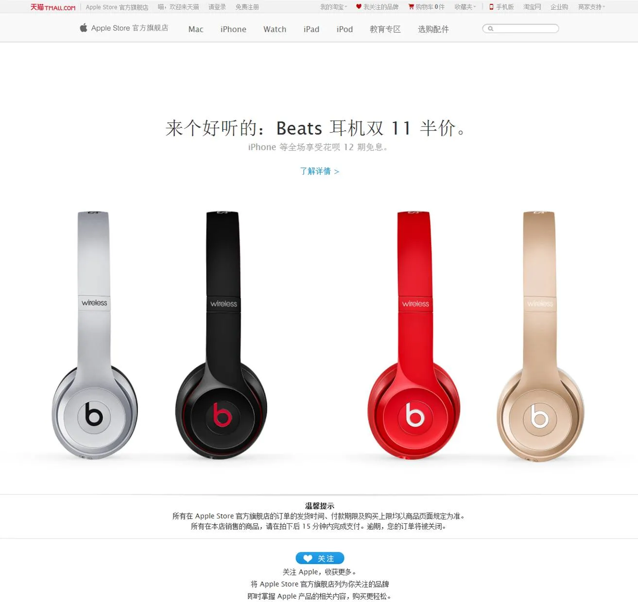 BEATS耳机将在双十一半价出售