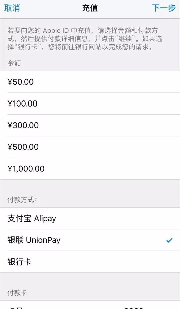 小编在打开苹果APP Store充值页面时
