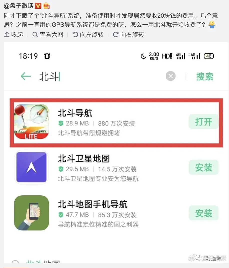 从他提供的截图来看,他下载的显然就是一个「冒牌」北斗产品。