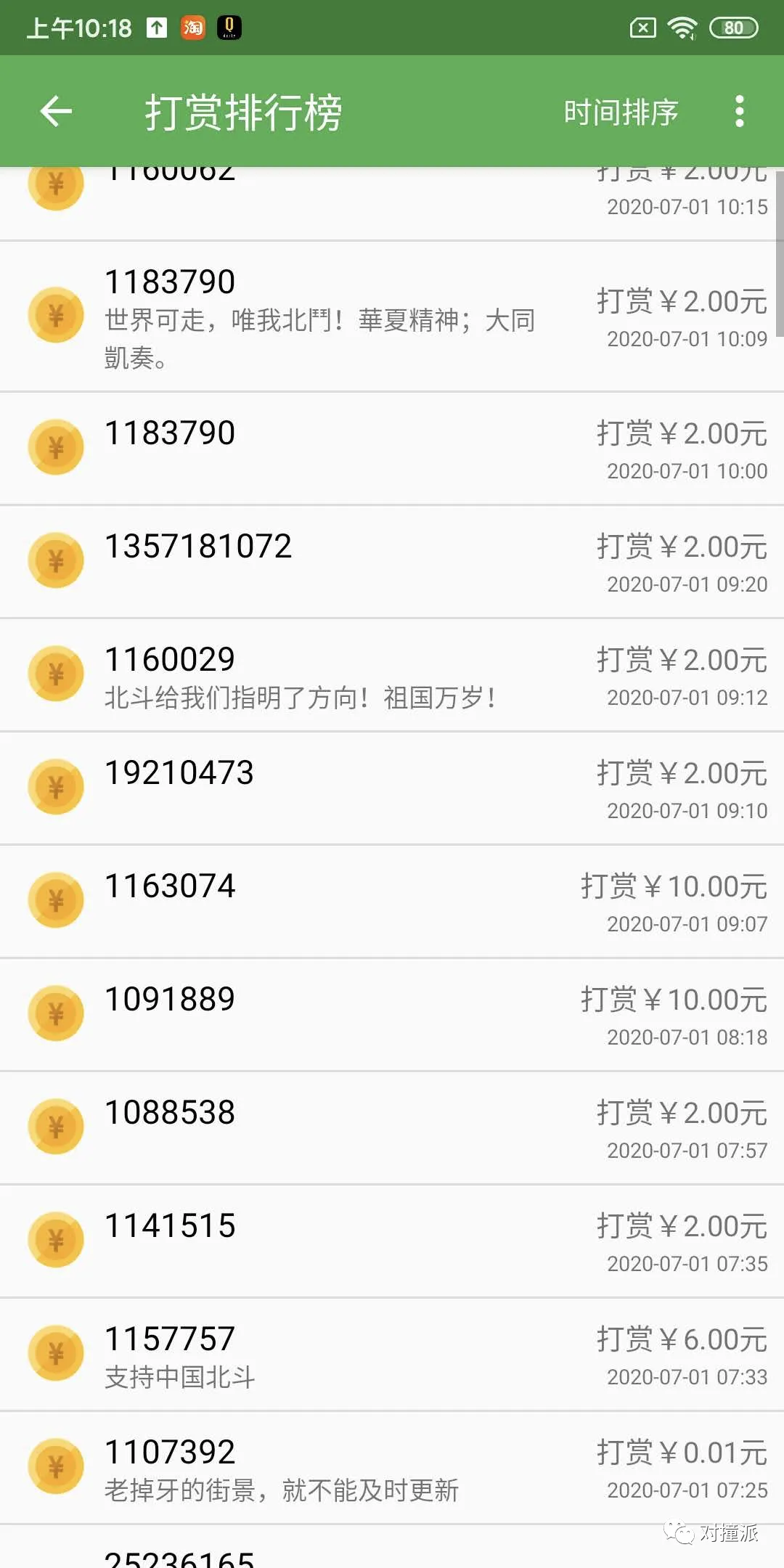里面还有一个打赏排行榜,大家看一下这个数据,仅在10点前,就能收到近百元的打赏,大家感受下: