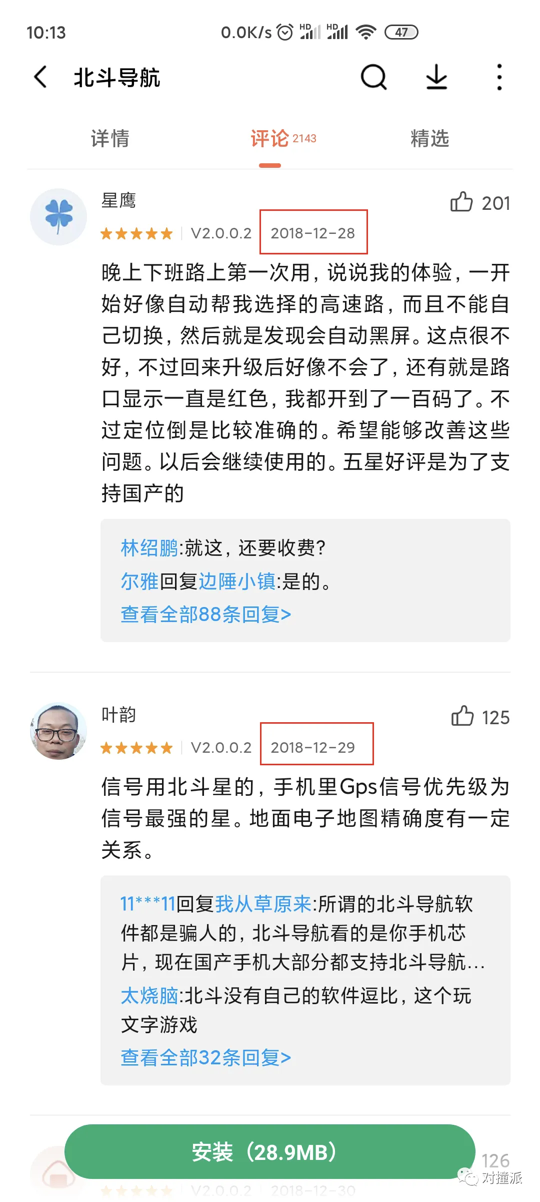 在小米应用商店中,「北斗导航」App在2018年底就有用户评论。