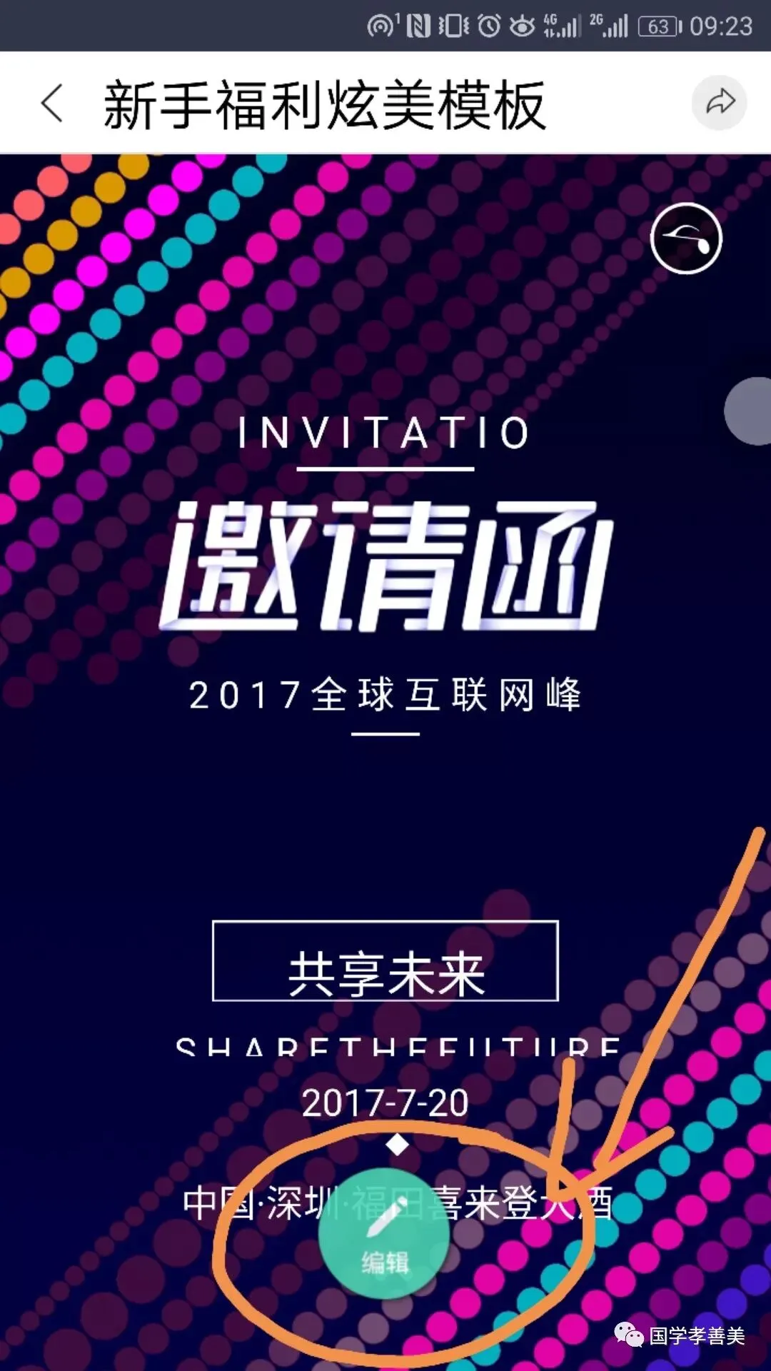5、选择图片下面的“编辑”,就可以开始自己的易企秀创作了: