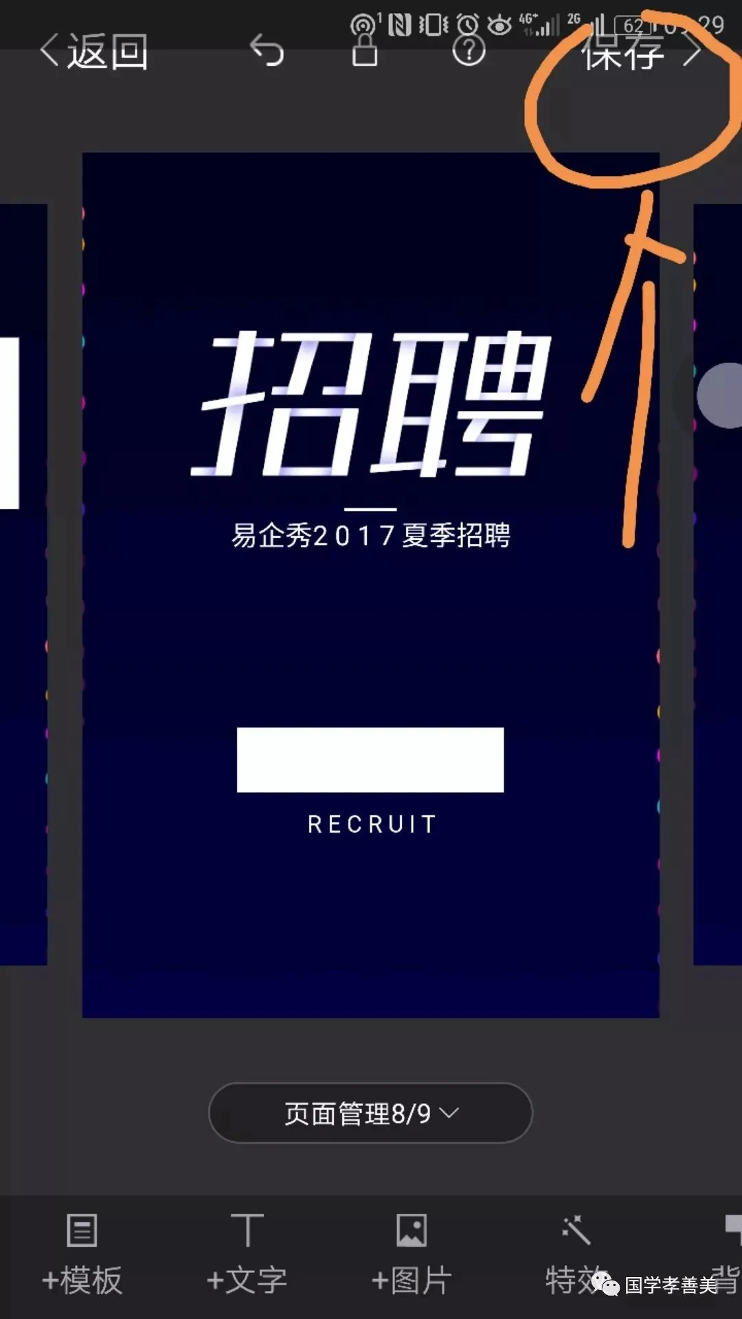 7、左右滑动版面,编辑完成之后,点击右上角的“保存”,先预览一下你的杰作,要是哪里不理想再改改: