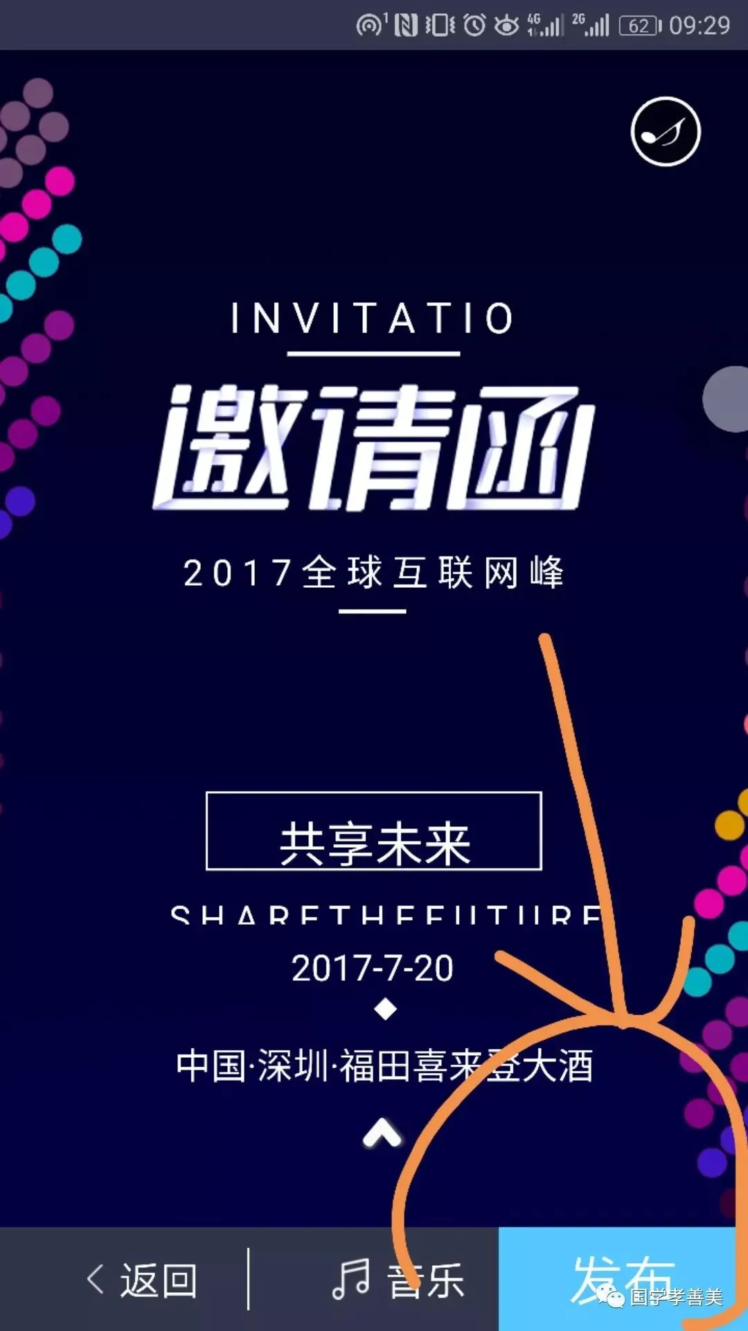 8、检查完毕点击右下角的“发布”,OK,一篇属于你自己的易企秀宣传连接就做好了: