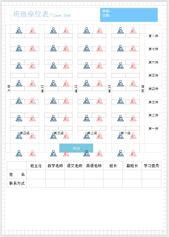 班级座位表打印版是传统班级管理中不可或缺的实用工具,它以直观、便捷的方式呈现班级座位布局,帮助教师快速熟悉学生位置,便于课堂点名、分组活动和日常管理。打印版座位表无需依赖电子设备,适用于断电或网络不便的场景,尤其适合张贴在教室门口或讲台,供师生随时查阅。尽管其更新不如电子版灵活,但打印版在稳定性和易用性上具有独特优势,尤其适合低年级学生或对电子设备不熟悉的教师使用。它不仅是一张座位图,更是课堂秩序与教学管理的基础保障。