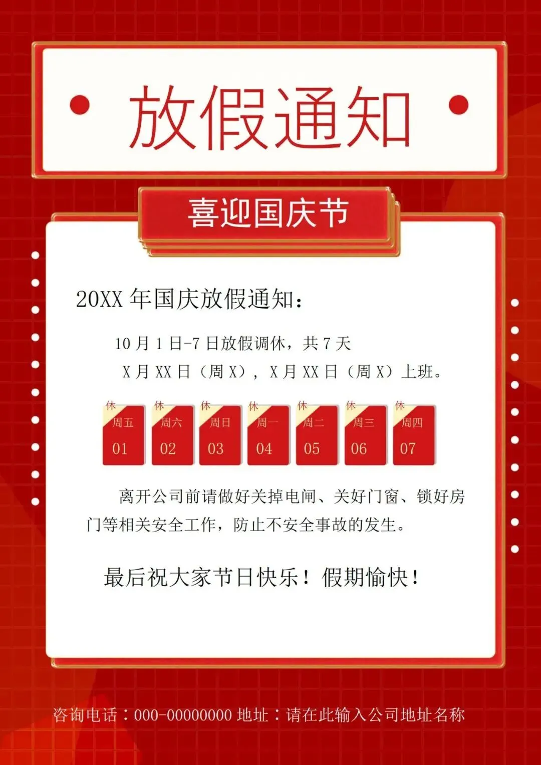 【免费下载】国庆节放假通知模板(Word电子版可编辑可打印) 本文内容分享国庆节放假通知Word模板 所有的模板完全免费,没有收费套路 链接:https://pan.quark.cn/s/ed30595adabd 更多免费资料资源点此查看 以下是部分图片 因篇幅有限 以上仅为部分预览图 🤗🤗🤗🤗🤗🤗 更多免费资料资源点此查看
