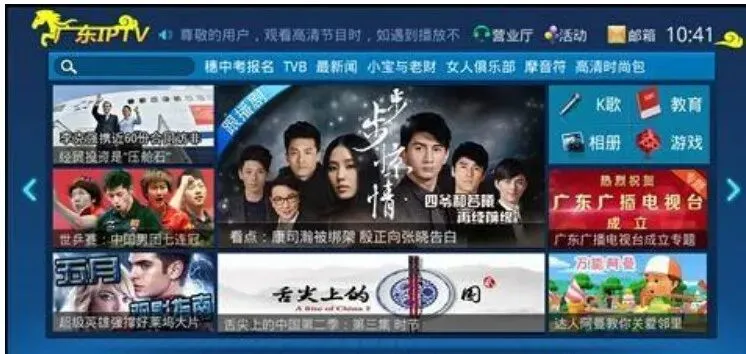 2、宽带运营商的IPTV机顶盒和有线数字机顶盒本质上没有太大的区别,有线机顶盒看电视是接收广电的电视线传输过来的信号,而IPTV机顶盒接收的信号是宽带运营商光纤传输的,由于信号源是光信号,相对来说,更加稳定,不卡顿。除此之外,IPTV机顶盒接收的电视台也比有线机顶盒要多的多,一般能接收好几个电视台,完全能够满足大部分用户的需求。