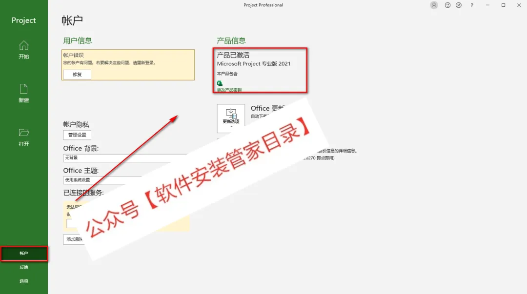 12.点击账户,在产品信息中可以查看是否激活成功,激活成功如下图,显示为产品已激活