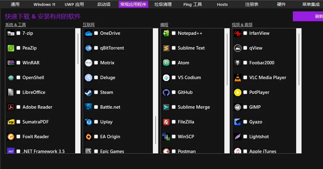 它甚至还内置了一个应用中心,可一键安装7Z、Winrar、qBiTorrent、NotePad++等常用工具。