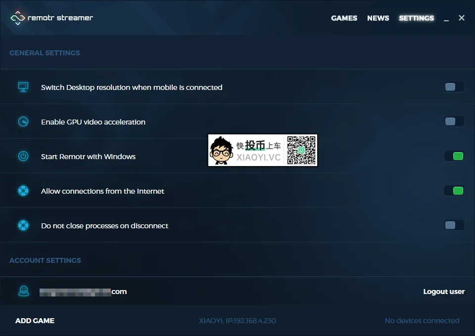 接着手机端的「Remotr」正常会识别到电脑,如果没识别到,也可以手动点”add streamer” 输入电脑IP地址添加。连接上后就会识别出电脑已经安装的游戏,也可以手动添加游戏。