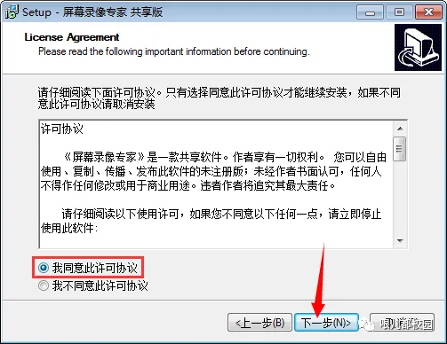 11.选择“我同意此许可协议”,然后点击“下一步”