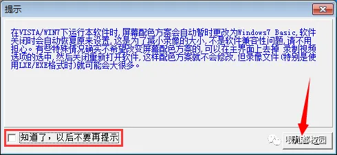 22.将“知道了,以后不要再提示”前面的复选框挑勾,然后点击“确定”
