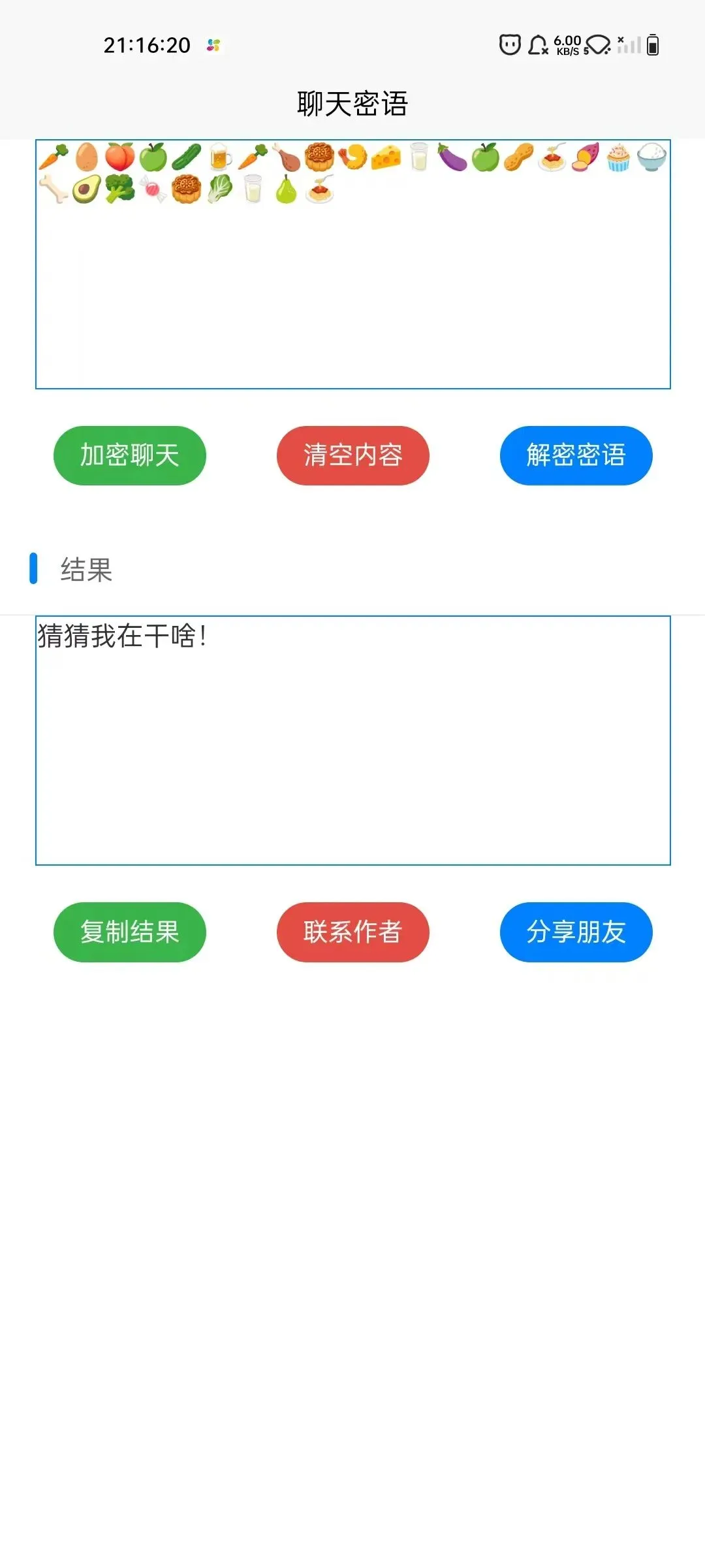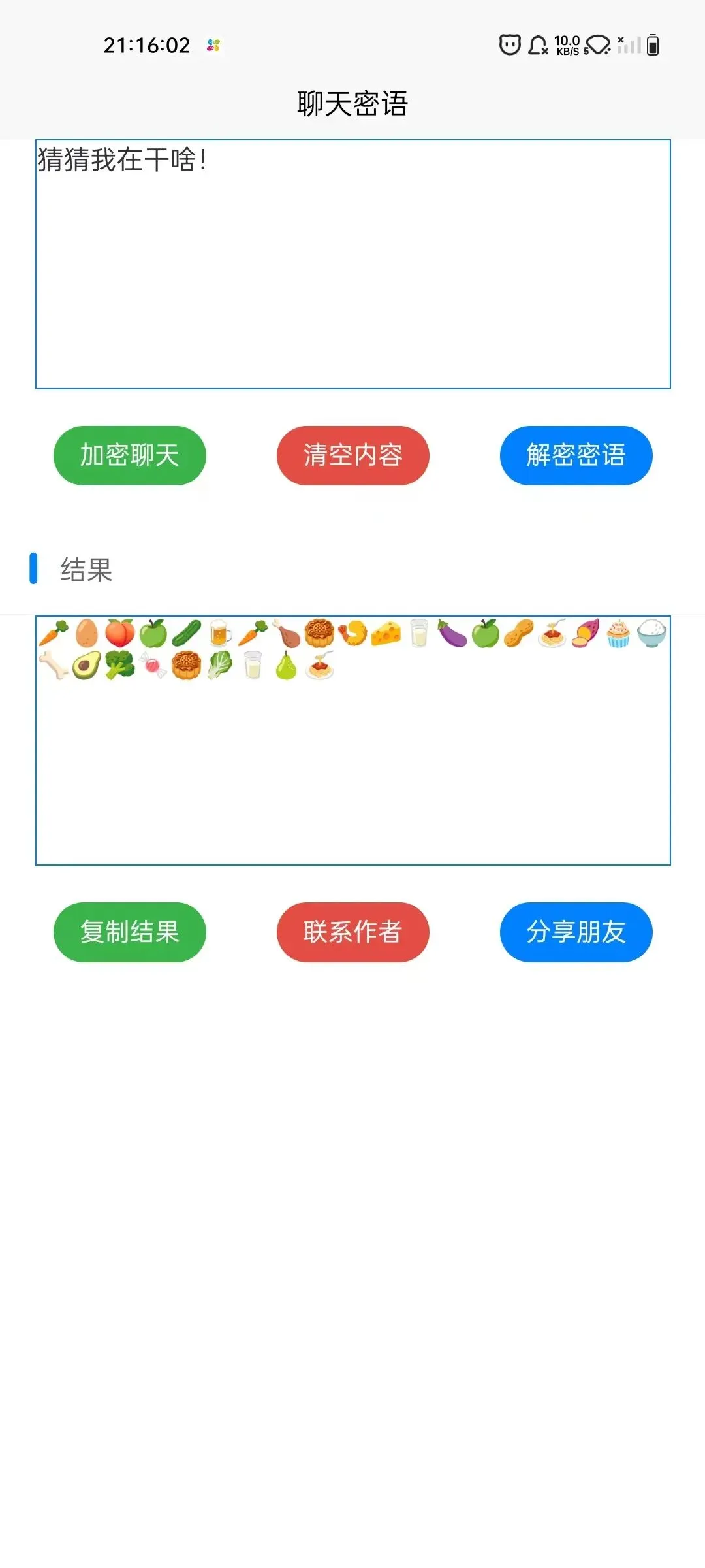 结果可以一键复制,并通过微信等聊天工具发送给好友,妥妥的加密聊天神器。