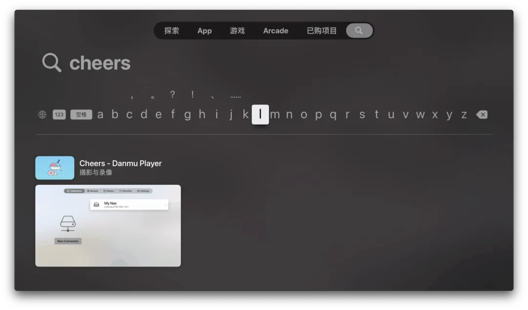 它相当于把阿里云盘的客户端放进 Apple TV 里。