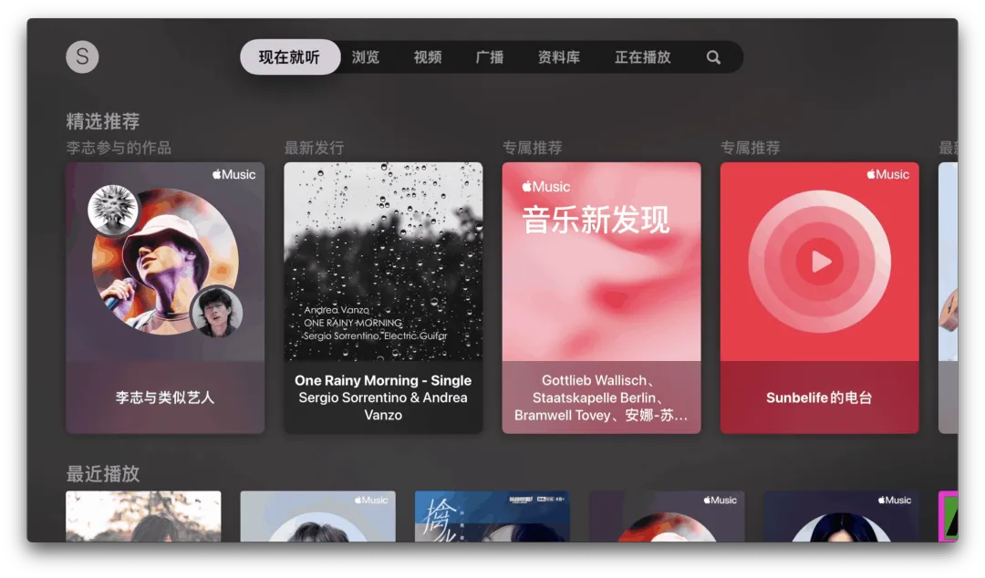 听音乐最简单的是用 AirPlay 直接像 AirPods 一样投到电视上。